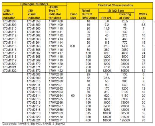 Dual-element, time-delay fuse – 10 seconds (minimum) at 500% rated amps (8 seconds for 0-30A sizes). Available with indication on select ratings (see Catalog Numbers table).